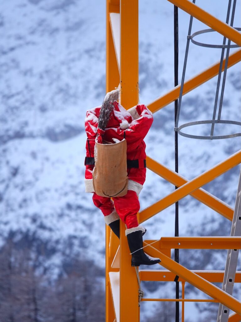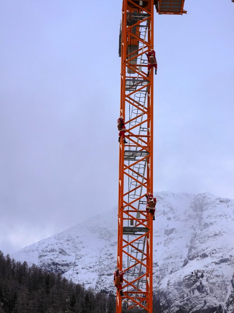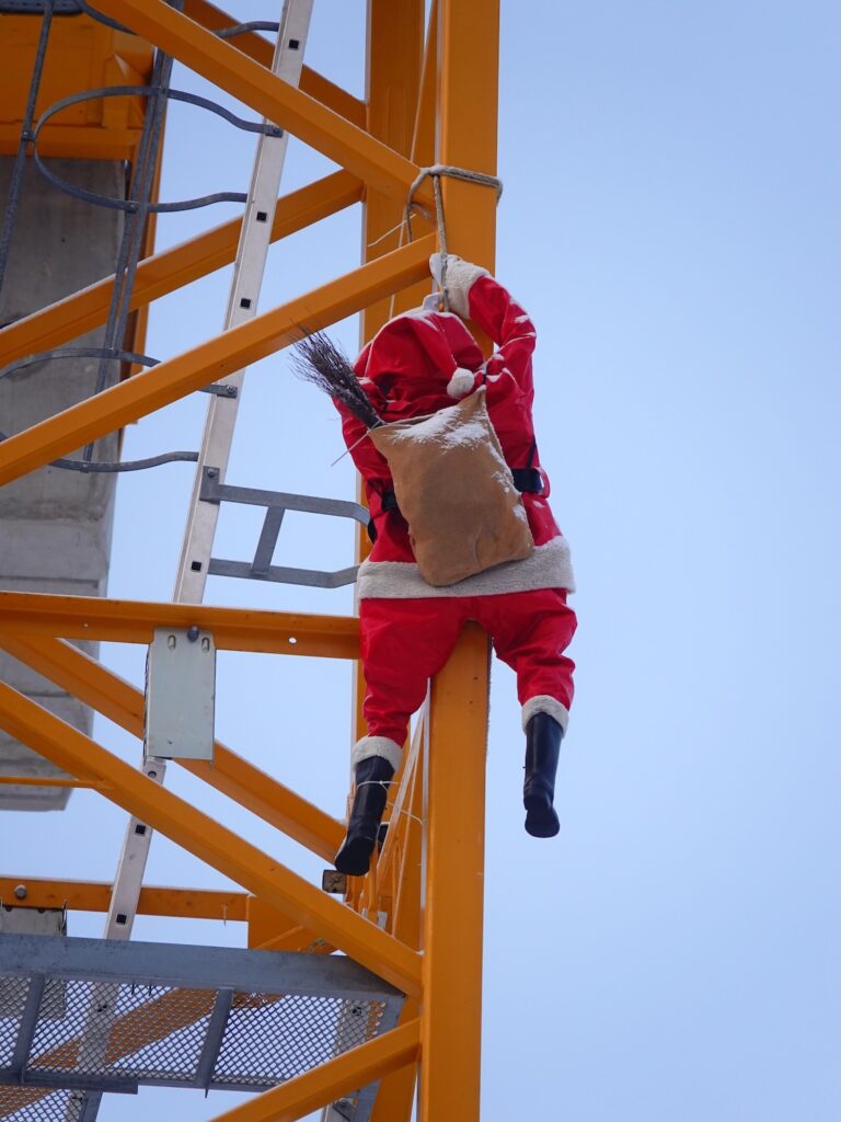 Vier Samichläuse erklimmen unseren Seiler Kran. Was sie genau damit bezwecken wollen, ist nicht ganz klar. Auf alle Fälle freut es uns sehr, dass wir für ihre Aktion behilflich sein konnten. Wir danken für die originelle Idee und wünschen eine schöne Adventszeit.